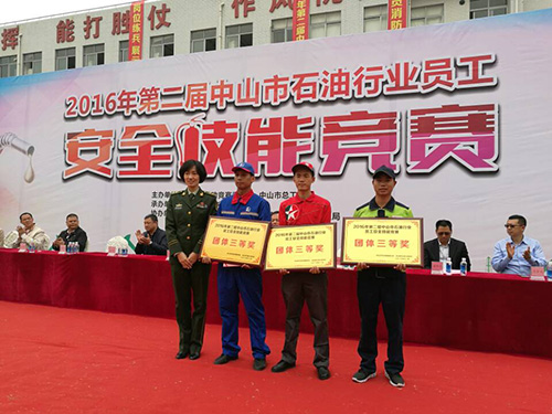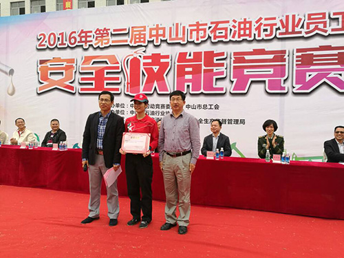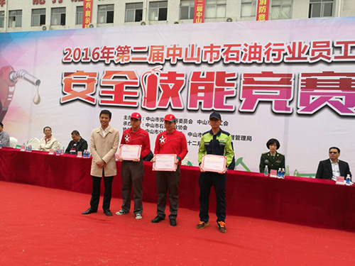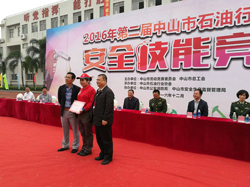 2016年12月13日,我司組團由總經(jīng)理親自帶隊參加了2016年第二屆中山市石油行業(yè)員工安全技能競賽,取得了優(yōu)異的成績。取得的獎項有團體賽三等獎、女子石棉氈一等獎和二等獎、女子滅火器滅火一等獎、男子石棉氈二等獎和男子滅火器滅火三等獎。